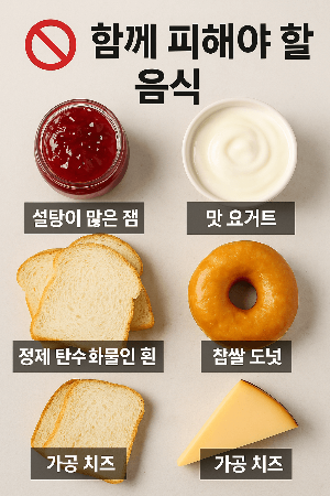 - 설탕 잼: 혈당 급등, 인슐린 저항성 악화