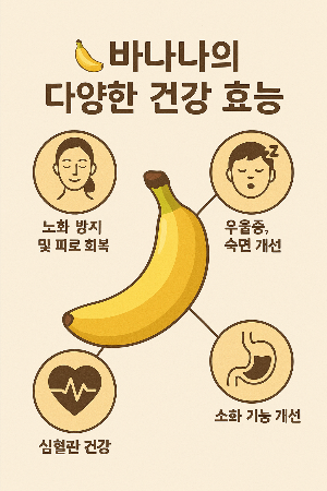 - 노화 방지 및 피로 해소: 바나나는 항산화물질이 풍부해 노화 방지와 피로 해소에 효과적입니다.